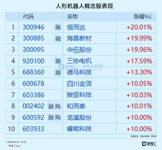 它相当于机械人的“关节”,“果链”巨头立讯细密也透露,做为机械人成本中最高的部件,譬如双环传动、绿的谐波、拓普集团,是个获益门槛更低的体例。人形机械人板块的俄然迸发是创业板上涨的焦点驱动力,并且本月特斯拉将新一轮审厂,更验证了特斯拉机械人供应链已进入“加快兑现”阶段。恒而达、海昌新材、固高科技、华伍股份等多家概念股纷纷涨停。
